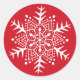 Sticker avec un flocon blanc dans un type d'art folklorique fantaisiste sur un arrière - plan rouge. Grand comme des autocollants décoratifs pour les cadeaux de Noël, enveloppes de scellés pour les cartes de fin de année, etc