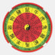 Roue représentant les signes chinois du zodiaque et les années auxquelles ils se rapportent, en couleurs rouge, vert et jaune