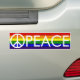 Un autocollant de pare-chocs arc-en-ciel avec un signe de paix et le mot Paix de l'autre côté.