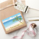 Autocollant rectangulaire avec l'image d'une journée idéale sur une île déserte et texte facultatif. Voir confettis assortis, sac de faveur, grand sac cadeau, étiquette cadeau et papier d'emballage. Voir l'ensemble de la collection Shipwreck Sticker dans les INVITATIONS | Section Stickers & Étiquettes.