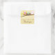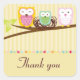 Autocollant de carré de Merci jaune de la famille Owl pour sacs et étiquettes de faveur.