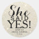 Stickers Fête des mariées simple avec Arrière - plan Parties scintillant. Une partie de ce qu'il a demandé, elle a dit oui ensemble. Voir l'autocollant correspondant ci-dessous. Changez les couleurs Arrière - plans ou textuelles pour convenir à votre occasion.