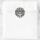 Ce petit autocollant rond est présenté dans un design festif Mardi Gras d'impression de masque de célébration. Customisez cet objet ou achetez tel quel.