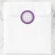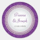 Un cadre circulaire contre un motif de damas à fleurs violettes donne à cet autocollant mariage une sensation riche et opulente. Le texte customisé s'insère dans le cadre orné pour en faire un parfait enregistrement de l'élément de date ou à utiliser comme scellés d'enveloppe ou sur faveurs. Disponible en couleurs alternatives avec des produits correspondants. Disponible en couleurs alternatives avec des produits correspondants.