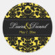 Autocollant Mariage Jaune et Noir Damask 1,5 po