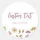 Personnalisez cet autocollant avec n'importe quel nom et événement pour créer des cadeaux de faveur ou des décorations personnalisés. Les invités adoreront ce thème de fleurs sauvages bohème, parfait pour une baby shower, une fête prénuptiale ou un anniversaire !