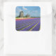 Sticker avec des fleurs d'hyacinthe violet et rose et trois moulins à vent dans un paysage dans la région Bulb dans le Pays-Bas.