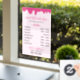 Affichez vos horaires d'ouverture avec style avec ces gouttes de glaçage rose avec fenêtre arrosée, accroché parfait pour votre pâtisserie, confiserie, pâtisserie ou pâtisserie, café et plus encore! Cette décalcomanie attirera l'oeil des gens ! Conçu pour que les heures de magasin soient faciles à lire et assez grandes pour voir à distance. Joli script avec queue pour le nom d'entreprise sur le devant et votre nom en bas. Entièrement personnalisable pour s'adapter à votre entreprise. Voir aussi nos points de coordination !
