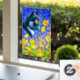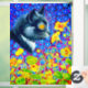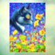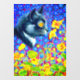 Cling de fenêtre avec la peinture animale de Louis Wain Chat in Sea of Flowers (1860-1939). Un chat noir et blanc aux yeux dorés sent les fleurs jaunes. Dans l'arrière - plan violet sont des fleurs bleues. Un cadeau merveilleux pour l'art amoureux des chats et anglais.