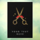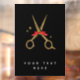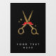 Changez facilement le texte ! Parties scintillant dorée ciseaux classique couleur noire combinaison. Elégant signe styliste cheveux avec un ruban rouge (élément photo).