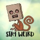 Bizarre, singe fou avec un sac en papier sur la tête avec le texte Stay Weird. Mots clés : singe, singe, primate, fou, fou, sac, papier, fou, bizarre, psycho, animal, psychotique, loco, dessin animé, vecteur, fou, gris, sac