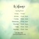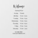 Ce panneau d'entreprise comporte un modèle que vous pouvez modifier pour afficher vos heures d'ouverture. Bienvenue dans un élégant script noir en haut du panneau. Tout le texte peut être modifié ou supprimé. Le panneau a un arrière - plan transparent.