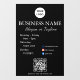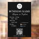 Conçu dans un style de script simple et moderne avec code Qr et réseaux sociaux. c'est parfait pour les cafés, les boutiques, les salons, les studios ou les bureaux qui apprécient une esthétique propre et minimaliste. Personnalisez facilement le nom de votre entreprise, votre logo et vos heures d'ouverture pour correspondre à votre marque. Idéal pour les portes ou les fenêtres en verre, donnant à votre entreprise une apparence soignée et accueillante.