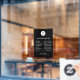 Conçu dans un style de script simple et moderne, c’est parfait pour les cafés, les boutiques, les salons, les studios ou les bureaux qui apprécient une esthétique propre et minimale. Personnalisez facilement le nom de votre entreprise, votre logo et vos heures d'ouverture pour correspondre à votre marque. Idéal pour les portes ou fenêtres en verre, donnant à votre entreprise une apparence soignée et accueillante.