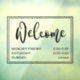 Horaires d'ouverture Cling de fenêtre avec du texte en noir ou en couleur sur un arrière - plan transparent avec le texte "bienvenue" dans une police de script de calligraphie élégante.