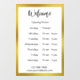 Ce panneau d'entreprise comporte un modèle que vous pouvez modifier pour afficher vos heures d'ouverture. Bienvenue dans un élégant script noir au sommet. Tout le texte peut être modifié ou supprimé. Le panneau a une bordure en or (pas de feuille) en faux élégant.