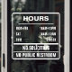 Panneau de fenêtre pour les heures d'ouverture du magasin. Personnalisez-le avec les heures d'ouverture de votre entreprise. Texte supplémentaire interdisant la sollicitation et les toilettes publiques qui peut être personnalisé pour répondre à vos besoins. Affichez-le sur la fenêtre avant ou la porte de votre établissement.