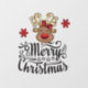 Une police de calligraphie sophistiquée entourée de petits contours de coeur et de feuilles dit "Joyeux Noël". Ci-dessus, une jolie illustration de dessin représentant le visage d'un renne aux faux cornes d'or et au nez de parties scintillant rouge. Elle porte un arc rouge sur sa corne et est entourée de flocons rouges et d'étoiles noires. Cette toile de fond est idéale pour n'importe quelle vitre en front de commerce d'affaires ou pour ajouter une touche festive à votre maison.