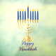 Idéal pour fêter la saison Hanoukka, ce design présente notre graphique vectorielle menorah originale avec calligraphie de texte, "Happy Hanoukka" salutation. Conception composite par Holiday Hearts Designs (droits réservés).