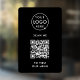 Un simple modèle de signalisation en vinyle noir d'entreprise, dans un style minimaliste moderne, qui peut être facilement mis à jour avec le logo de votre entreprise, le code QR et le texte personnalisé.