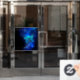 blue, glowing butterflies morpho on a dark ground. Morphine. Design avec des babouins.