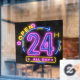 Autocollant Pour Fenêtre Neon Stores ouvert 24 heures Cling de fenêtre