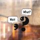 Humour de grammaire. La virgule dit, "Attends" et le point d'interrogation s'appuie, "Quoi ?"