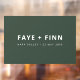 Simple et élégant panneau en vinyle de mariage accroché à la fenêtre de marque dans un style moderne minimaliste scandinave scandi avec une typographie contemporaine en blanc sur un arrière - plan vert de la forêt de mousse dans un style décontracté informel. Le texte peut facilement être personnalisé pour un unique d'une faveur de mariage aimable pour votre journée spéciale.