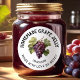 Étiquette de gelée de raisin maison modifiable avec une grappe de raisins rouges et fond vintage. Créez vos propres étiquettes pour vos recettes maison préférées. Parfait pour les conserves, les cadeaux faits maison ou comme organisateur de cuisine.