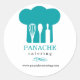Un graphique d'un casquette de chef turquoise avec des outils de cuisine créant un espace négatif à l'intérieur domine cet autocollant promotionnel. Un autocollant polyvalent qui fonctionnera pour une entreprise de restauration, un chef ou un boulanger personnel. Disponible en couleurs alternatives avec des produits correspondants.