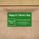 Autocollant rectangulaire avec un joyeux Saint-Patrick, le nom de votre entreprise et d'autres informations de votre entreprise. Vous pouvez l'utiliser comme accessoire pour votre matériel d'emballage de produit pour promouvoir votre marque de produit. Vous pouvez également l'utiliser comme matériel de marketing pour faire de la publicité pour votre entreprise auprès de vos clients. Autocollant personnalisable que vous pouvez utiliser pour renforcer la notoriété de votre marque. Les couleurs de conception sont vert clair et texte blanc sur fond vert. Pour personnaliser cet autocollant, téléchargez votre logo d'entreprise, tapez votre nom d'entreprise, adresse et numéro de téléphone. Après avoir téléchargé le logo et saisi les textes, veuillez vérifier l'apparence. Si l'apparence vous convient, vous pouvez passer votre commande maintenant. Si vous devez redimensionner et déplacer le logo et les textes pour les adapter à cet autocollant, veuillez modifier dans l'outil de conception. Vous pouvez également apporter d'autres modifications dans l'outil de conception en fonction de l'apparence de cet autocollant que vous préférez, telles que la modification de la couleur de fond, la couleur de police et le style de police. Joyeux Saint-Patrick ! Nous vous souhaitons davantage de ventes pendant cette fête.