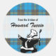Une illustration vintage d'un chef contre un arrière - plan bleu plaid forme la base visuelle de ce mignon autocollant. Utilisez l'expression "De la cuisine de" ou faites-la vous-même et ajoutez votre nom (ou celui d'une autre personne). Il y a assez de place ci-dessous pour écrire votre nom de plat. Disponible dans d'autres modèles et combinaisons de couleurs.