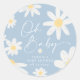 Cet autocollant rond fait partie de la collection Floral Daisy baby shower, qui se caractérise par un style rétro avec des fleurs de marguerite aquarelle et une couleur bleue poussiéreuse, parfaite pour le baby shower d'un garçon. Avec d'innombrables options de personnalisation, ce modèle est facilement personnalisable à tous les événements et facile à adapter à vos couleurs.