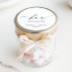 Ces autocollants de faveur de mariage présentent un design minimaliste et un titre en calligraphie. Personnalisez les sacs avec vos noms et date, le titre en script n'est pas modifiable. Ces autocollants de faveur peuvent être utilisés pour les mariages, les fêtes prénuptiales, les fêtes de naissance, les anniversaires ou tout autre événement. Pour une personnalisation plus avancée de ce design, sélectionnez simplement le bouton "Personnaliser" ci-dessus.