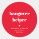 "Hangover Helper" autocollants rouges pour les kits de soulagement de la gueule de bois mariage après la soirée. Le design se caractérise par une typographie moderne avec un petit coeur d'or mignon sur un arrière - plan de couleur rouge. Personnalisez le design en remplaçant les noms, la date et le hashtag mariage.