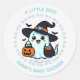 Rendez Halloween encore plus amusant avec cet autocollant rond fantôme mignon. Avec un fantôme bleu souriant portant un chapeau de sorcière et tenant des seaux de citrouilles, entouré de chauves-souris et d'éléments effrayants, il est parfait pour les sacs de friandises, les faveurs de fête et les bricolages d'Halloween.