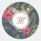 Beau motif floral de Hibiscus sur arrière - plan foncé. Autocollant rond sophistiqué et féminin avec monogramme en forme ronde blanche. Vous pouvez facilement modifier le texte (police, couleur, taille et position) et l'arrière - plan d'image (taille et position) en cliquant sur le bouton personnaliser. Correspondance sac de faveur, bagage, étiquette de bagage et plus...