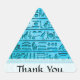 Un ensemble d'autocollants en forme de triangle de pyramide bleue "Merci" avec d'anciens hiéroglyphes gravés sur pierre. Les mots "Merci" sont personnalisables !
