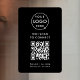 Ce panneau adhésif noir pour fenêtre en vinyle fournit un moyen propre et moderne pour les clients ou les invités d'accéder à votre réseau wifi instantanément. Le design comporte une zone de code QR central qui peut être liée à vos informations wifi afin que les utilisateurs puissent scanner pour se connecter sans saisir de mot de passe. Au-dessus, vous pouvez télécharger votre logo d'entreprise et en dessous, entrer le nom de votre réseau et toutes les instructions personnalisées qui conviennent à vos besoins. La mise en page minimaliste garde tout lisible, ce qui fonctionne bien pour les cafés, les salons, les studios, les bureaux, les propriétés de location, les pop-up ou les lieux d'événements. Parce que le modèle est entièrement modifiable, il s'adapte facilement aux mises à jour de la marque ou aux nouvelles informations wifi. Une solution pratique et soignée qui aide à rationaliser l'accès des clients et améliore votre expérience en personne.