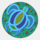 Tortue de mer nageant en diagonale. Coquille et corps à motifs avec principalement des couleurs bleues. L'art des tortues marines.