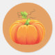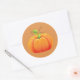 Autocollant rond montré avec un imprimé citrouille automne moisson automne. Customisez cet objet ou achetez tel quel. com.
