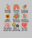 Description : Collection de citations et d'illustrations inspirées dessinées à la main et comportant des fleurs, un arc-en-ciel, un coeur et des messages encourageants tels que "Soyez toujours gentil", "Vous avez de l'importance", "Focus sur le bien" et "Vous êtes aimé". La palette de couleurs pastel douce et la typographie ludique créent une esthétique chaleureuse et positive.
