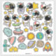 Amusant astronaute de dessin animé, fusées, planètes et autocollants de l'espace d'OVNI.