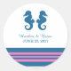 Stickers de Mariage de Cheval de mer élégant et classique avec une paire de hippocampes simples et une série de rayures en bleu marine foncé et rose. Ces autocollants sur le thème de la plage nautique peuvent être facilement customisés avec vos détails mariages. Pour plus d'options de personnalisation, cliquez sur le bouton Customiser.
