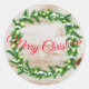 Cet autocollant rond est présenté dans une impression de couronne de fête de Noël festive.
