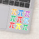 Stickers avec symboles pi orange, bleu, jaune, vert, violet et rouge. Feuille avec neuf autocollants individuels.