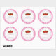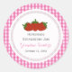 Chaque autocollant a un joli motif à carreaux rose et blanc, avec 3 fraises sur le dessus.