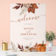 Aquarelle bohème moderne brûlée orange terracotta automne palette de couleurs feuillage botanique et citrouille faisant un élégant élégant acrylique FROSTED mariage signe de bienvenue avec un script de calligraphie à la mode écriture manuscrite. +++++++++++++++++++++++ Facile à personnaliser avec vos détails !