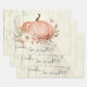 3 feuilles de papier d'emballage de poids lourd avec un design de chute qui a été magnifiquement peint en aquarelle. Citrouille d'automne orange brûlé avec des feuilles d'automne sur un bois rustique couleur crème, peint avec d'élégants ornements d'imprimante éphémère parfaits pour offrir un cadeau de saison, l'artisanat ou le mobilier découpage Peinture à la main par Audrey Jeanne Roberts, artiste et designer de renommée internationale, copyright.