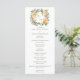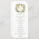 Ce joli programme de mariage est parfait pour la fin de l'été ou l'automne, mais il fonctionne aussi bien pour les événements d'été. Il dispose d'une belle couronne circulaire fleurie en haut, avec les initiales de la mariée et du marié au centre. Les couleurs incluses dans la couronne sont l'or, l'orange mandarine, le jaune citron et le vert, ainsi que des touches de violet et de rouge. Sous la couronne se trouve votre texte personnalisé. La partie inférieure est un grand champ, vous pouvez donc ajouter ou soustraire selon vos besoins. Si vous devez modifier la police, la couleur, la taille ou l'emplacement du texte, choisissez Customiser. Assurez-vous de voir les invitations correspondantes et d'autres produits mariages dans notre magasin.